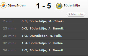 5-1 till Södertälje efter två perioder. Det innebär att om ca 20 minuter är mitt saldo nere på 10 kr. Då står allt hopp till ett enda spel. F-n vet om jag vågar sätta min sista slant på Söderling – tveksamt.